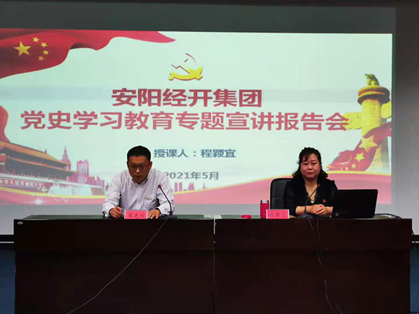 集團(tuán)邀請(qǐng)了中共安陽(yáng)市委宣傳部黨史宣講團(tuán)成員,中共安陽(yáng)市委黨校政法教研部主任程穎宜教授作專題授課。集團(tuán)黨委副書(shū)記、總經(jīng)理周光明主持會(huì)議。