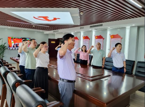 最后支部全體黨員在黨旗面前鄭重舉起右拳,重溫入黨誓詞,堅定入黨初心,汲取奮進(jìn)偉力。