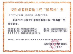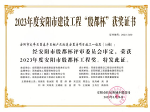 殷都杯”獎是安陽市住建局為提高我市建設(shè)工程質(zhì)量,促進(jìn)建設(shè)工程參建各方加強(qiáng)質(zhì)量管理所設(shè)置的獎項(xiàng),是我市建設(shè)工程質(zhì)量最高榮譽(yù)獎。2023年上半年,安陽市住建局開展了本年度“殷都杯”獎評選活動,通過復(fù)查審定,5月份對獲獎的工程進(jìn)行了公示,并于上周正式下發(fā)相關(guān)榮譽(yù)證書。