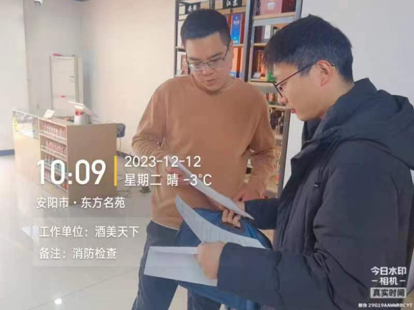 根據(jù)市財政局國資綜合法規(guī)科及經(jīng)開集團(tuán)組織的安全生產(chǎn)檢查整改要求,為落實企業(yè)安全生產(chǎn)主體責(zé)任,做好安全生產(chǎn)及消防工作,2023年12月12日信息化公司迅速展開行動,積極履行企業(yè)的安全生產(chǎn)責(zé)任,對名下資產(chǎn)——東方名苑商業(yè)四、商業(yè)五、北關(guān)區(qū)碧水名郡及各承租單位進(jìn)行相應(yīng)消防安全檢查。